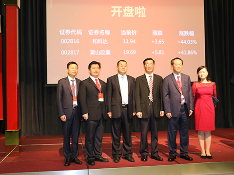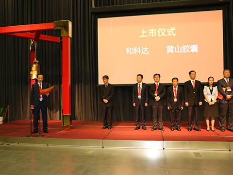 俞仕新总裁在上市仪式致辞中,代表公司对黄山胶囊成功登陆深圳证券交易所中小板市场表示热烈祝贺,并表示国元证券将按照中国证监会、深圳证券交易所的要求,尽职履行保荐机构的职责,以一流的人才队伍和丰富的专业经验为客户提供优质的服务,继续为中国资本市场输送新鲜血液,为推动中国优秀企业的持续发展贡献更大的力量。黄山胶囊董事长余春明对国元证券在黄山胶囊上市过程中所做的工作和努力表示感谢。