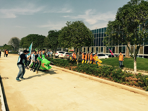 随着教练的哨声响起,各队高举队旗,展示列队,依次介绍队名、口号等。“红牛队”、“天马队”、“雄鹰队”,还有令人震惊的捉妖队的口号:“世间只有两个队,捉妖队和其他队”,—度把团队间的较量推向了高潮。竞赛中大家互相帮助,拚尽全力,到最后脚步就如同被水泥凝住—般,但还咬着牙向胜利前进,绝不放弃。