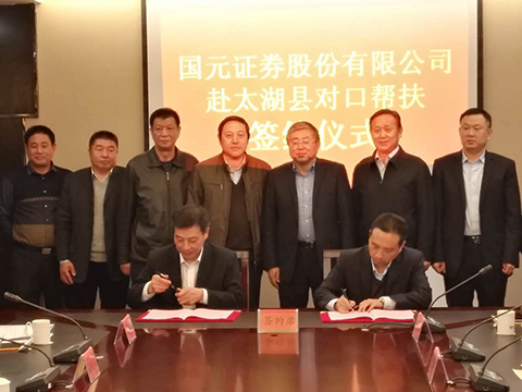 新华网合肥12月1日电(李昂)11月29日,国元证券股份有限公司与太湖县委县政府在太湖县举行《对口帮扶备忘录》签约仪式。据了解,这是国元证券履行企业社会责任,发挥资本市场作用服务国家脱贫攻坚战略的有力举措。