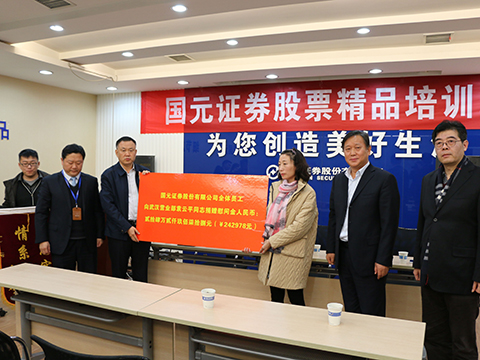 在得知袁云平同志的情况后,该营业部全体员工在最快的时间自发地组织起来,爱心捐款57000元资助袁云平。公司领导得知此事后,指示由公司党群工作办公室牵头,向全体员工发出了倡议,发扬“一方有难,八方支援”的精神,为袁云平同志紧急捐款。人多山倒,力众海移。倡议书一经发出便得到了大家的积极响应,虽然捐款活动本着自愿原则,但是上到公司董事长、总裁,下至中层干部到普通员工,甚至是外聘人员,大家都积极踊跃,纷纷伸出自己的援助之手,献出一份爱心。经统计,一共有113个部门、1686位同仁参与捐款,募集到捐款总额244678元,包括武汉营业部员工及国元直投公司的捐款,捐款总额达30余万元。