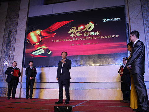 2017年1月15日,国元期货有限公司2016年度总结表彰大会暨2017年新春联欢会于北京举行,国元证券总裁俞仕新先生莅临现场,同时到会的还有康和期货股份有限公司郑大宇、王文浩、长盛基金管理有限公司董事长高新、国元证券北京分公司总经理杨念新、国元(香港)北京分公司总经理周磊、国元证券机构管理部总经理刘锦峰以及国元期货独立董事贺强等领导。北京公司全体员工,各分支机构经理及优秀员工代表,与公司领导欢聚一堂,共度联欢。