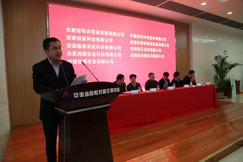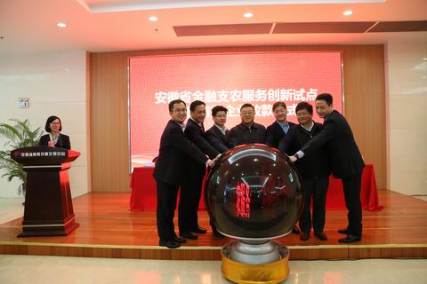 出席仪式的领导和嘉宾有省农委副主任陈卫东、省政府金融办资本市场处处长胡建民、省财政厅农业处副处长王知国,项目参与各方国元农业保险股份有限公司、中国人民财产保险股份有限公司安徽省分公司、上海浦东发展银行股份有限公司代表,首批放款企业代表、观摩企业代表和所在地市农委领导,以及国内知名媒体记者。陈卫东副主任、国元保险副总裁李传盛、人保财险安徽分公司副总经理朱朝晖、浦发银行合肥分行行长助理王俊杰分别作了热情洋溢的致辞,省股交中心总经理孙方刚向参会领导和嘉宾介绍了农业板及金融支农试点项目实施情况。在致辞中,陈卫东副主任高度肯定省股交中心在推动试点项目落实方面所做出的努力和所取得的成绩,希望省股权交易中心以试点项目为契机,探索建立农业资本市场金融综合服务机制,构建农业企业在资本市场信贷融资的绿色通道,促进挂牌企业持续规范经营,继续做大做强农业板;希望各市县农业部门和试点项目协作单位通力合作,继续加大工作力度,坚持特事特办原则,进一步理顺工作流程,提高放款效率,扩大试点范围,不断实现放款额度新突破,让试点项目惠及更多的企业,在全国农村金融创新领域树立安徽领先的品牌和形象。仪式的高潮部分,是陈卫东、胡建民、王知国、李传盛、朱朝晖、王俊杰、孙方刚共同上台,按下启动球开关,“祝贺安徽省金融支农服务创新试点项目成功放款”,绚丽绽放的文字引发全场的热烈掌声。