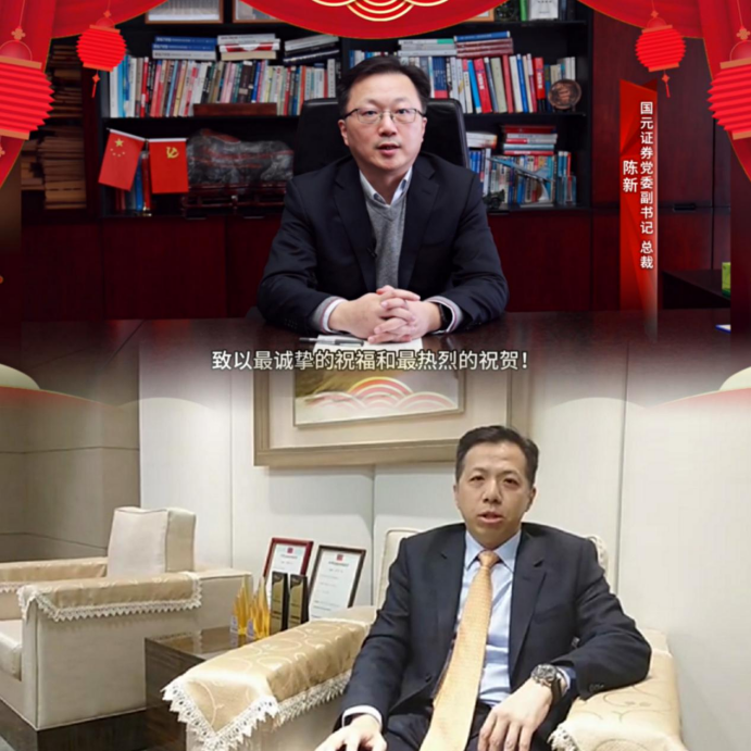 国元证券总裁陈新及台湾康和证券董事长郑大宇发表新年贺词