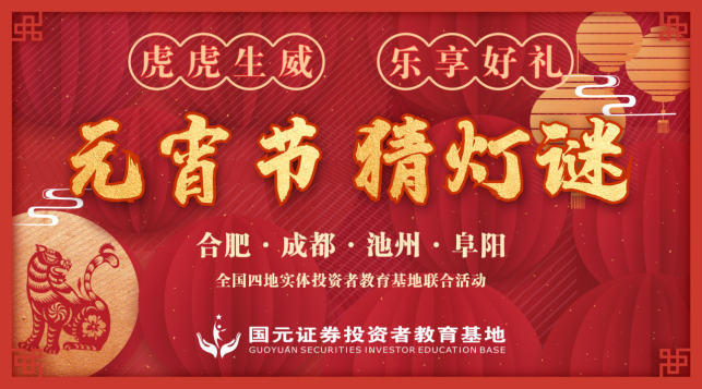 新年伊始,冬去春来;元宵佳节,皓月初现。传统中国年,为了庆祝元宵节的到来,男女老少都会出门逛庙会、赏灯花、猜灯谜,自南宋起,我国就有了元宵猜灯谜的习俗。为进一步弘扬这一传统文化,营造欢乐祥和的节日气氛,国元证券投资者教育基地在合肥、成都、池州、阜阳四个分基地属地城市联合举办了“元宵节 猜灯谜”活动。这也是国元证券投教基地全国各分基地活动的首次联动,并将投教工作与传统习俗结合,让投资者在轻松愉快、充满乐趣的氛围下参与投资者教育活动。
