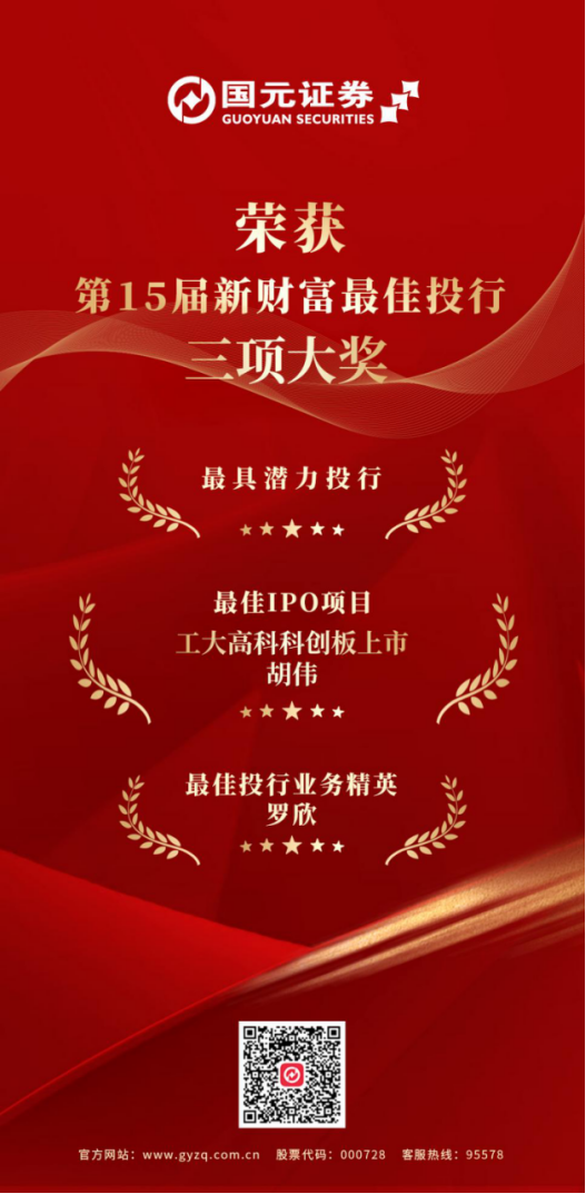 值得一提的是,本次获评“最佳IPO项目”的工大高科是首次公开发行股票并在科创板上市,是中国工业铁路信号控制与智能调度领域第一股,同时也是合肥工业大学旗下高科技企业中第一家科创板上市公司。项目负责人是公司金牌保代胡伟,该项目是国元证券立足本土市场、服务本地实体经济的又一典型案例,也是“投资+投行”的又一成功实践。