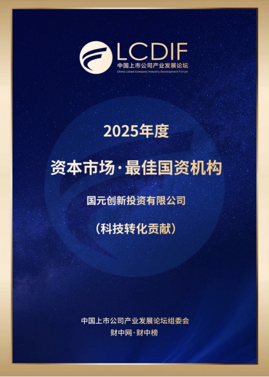 这一奖项的获得,不仅体现了行业对国元创新专业能力的高度认可,更是对国元创新践行国资国企使命、赋能实体经济发展成果的充分肯定。国元创新将进一步加大在前沿科技领域的布局力度,强化资本纽带作用,为推动科技创新与产业升级注入更强大的国资力量。